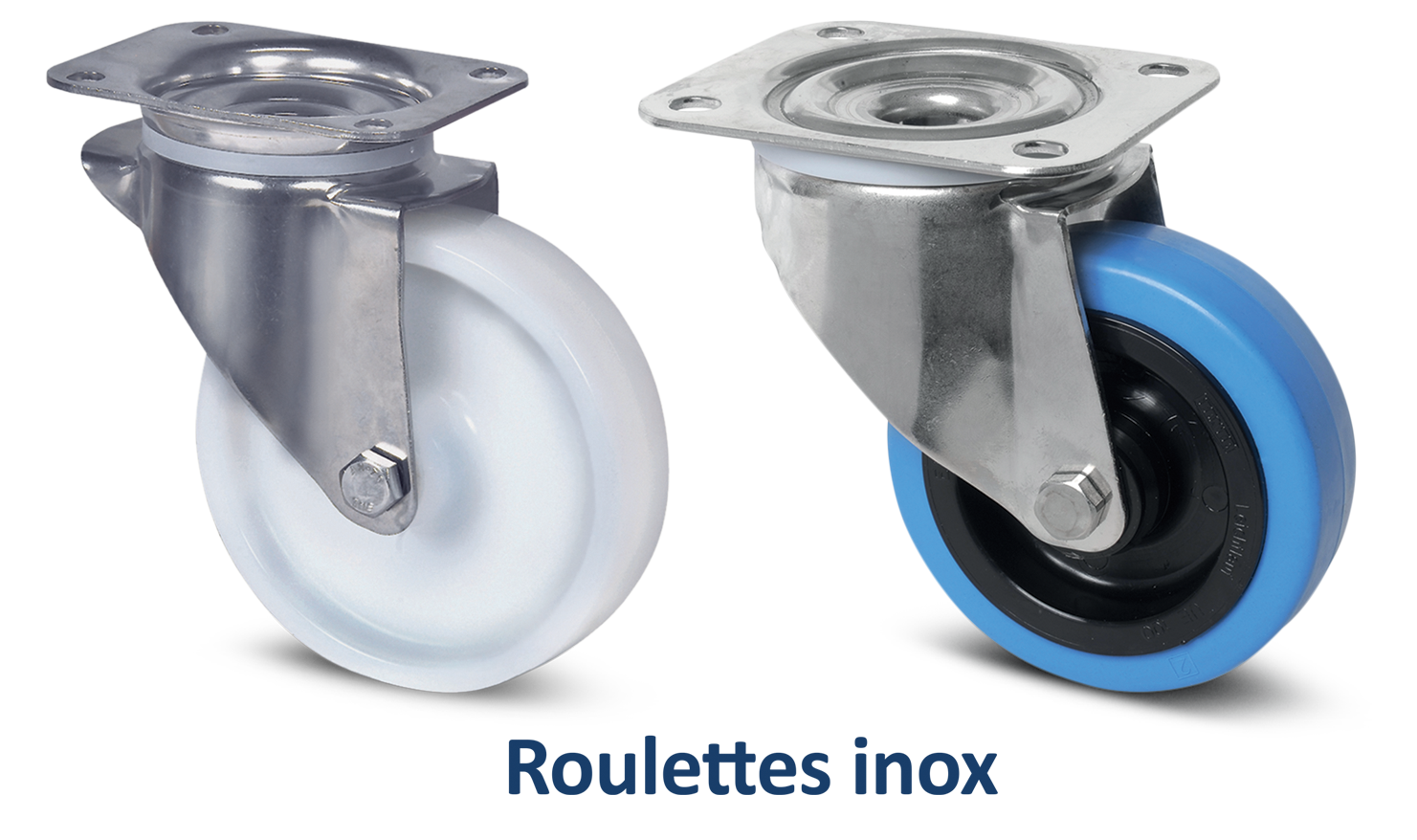 Découvrez facilement nos roulettes en acier inoxydable grâce au pictogramme "inox".
