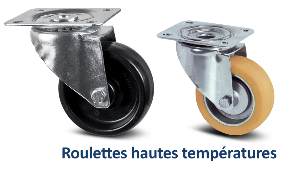 Disponible en acier embouti ou en acier inoxydable, nos roulettes hautes températures sont équipées de roues spécifiques :