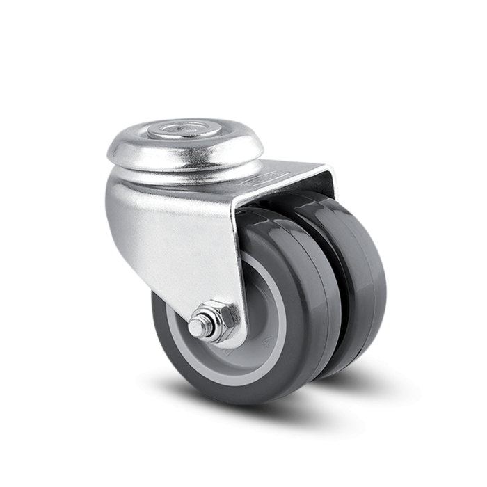 Adaptée à diverses applications, on peut retrouver ce modèle sur de petits mobiliers, des présentoirs de magasin ou encore des petits chariots. Équipée d’une roue avec un bandage en caoutchouc thermoplastique, elle est également dotée d’une fixation à trou central. Quant au corps de la roue, il est en polypropylène avec un moyeu lisse.